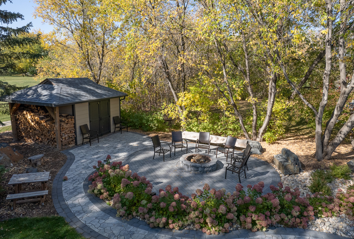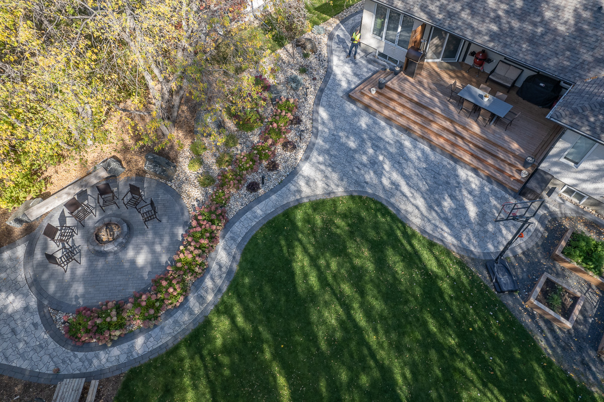 The finished space features new sod, a vibrant rock garden, a paver stone patio with a lit pathway to a fireplace seating area, a composite deck, and a custom storage shed. Their once overlooked yard is now their favorite place to gather. Thoughtfully designed and expertly built, this project shows how the right landscape can turn a house into a home.