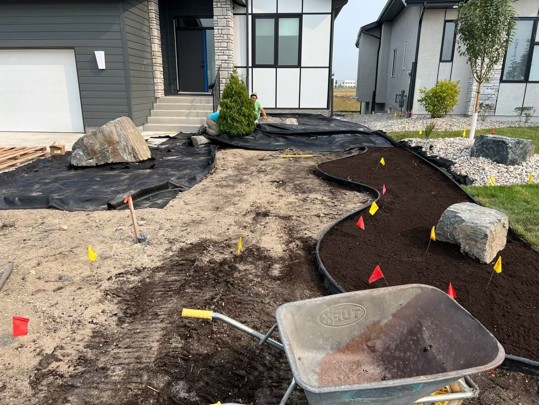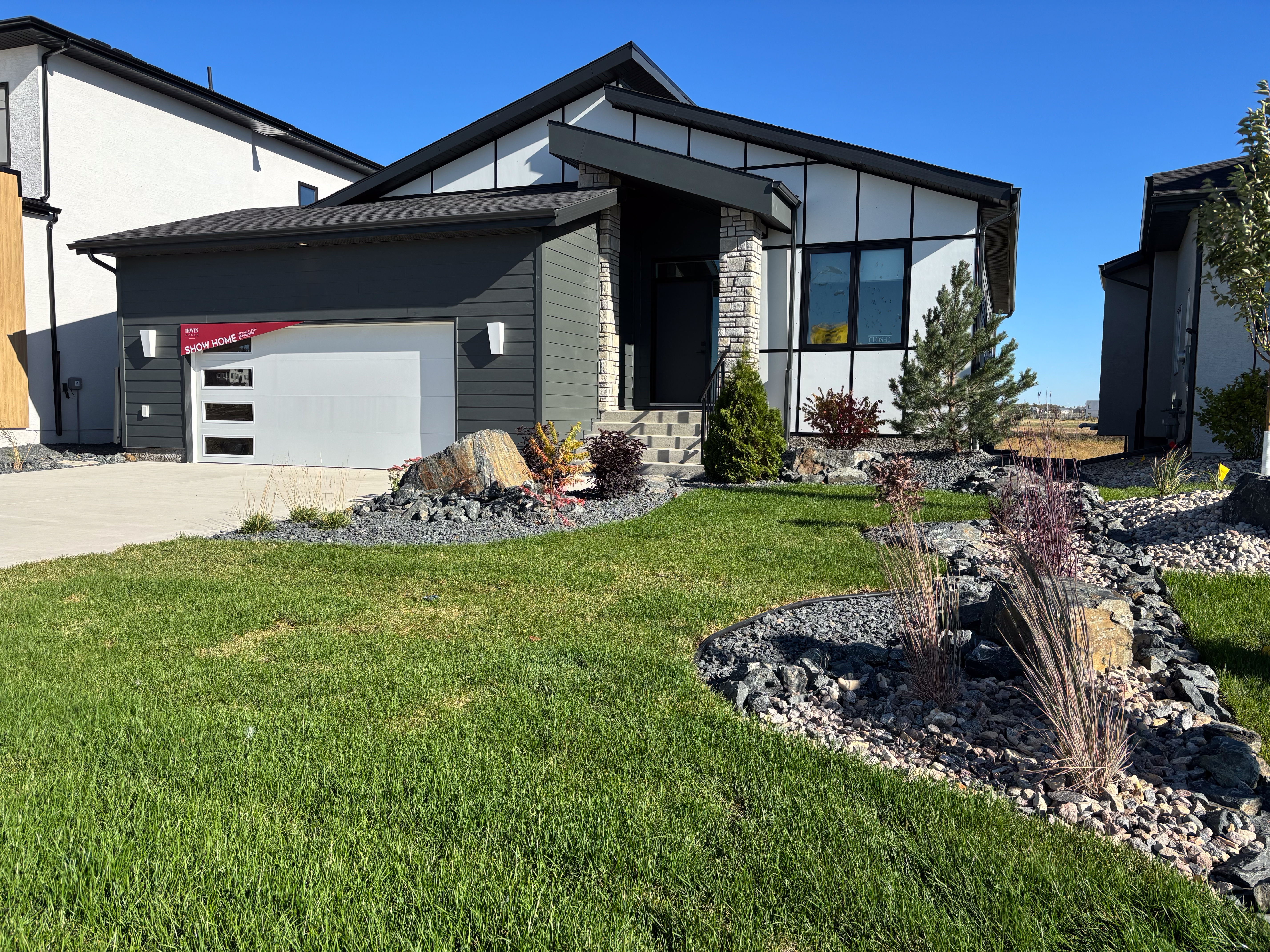 Starting with a clean slate and a clay base, we designed a landscape that would appeal to any potential buyer. Something simple, timeless, and easy to maintain. Rock beds wrap the home, layered with hardy, low-maintenance plants and anchored by large decorative granite boulders that add natural character.